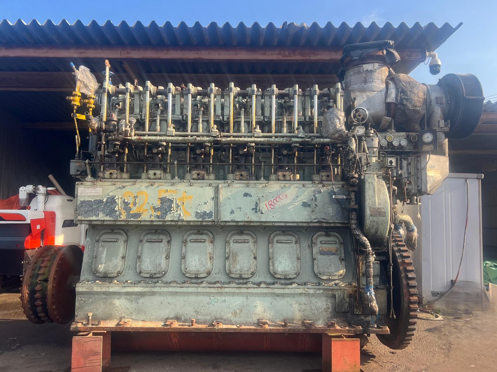 The AKASAKA K28SFD -9668 is a 6-cylinder marine diesel engine from the GH series, often configured with a 430HP to 440PS output, designed for commercial marine applications.