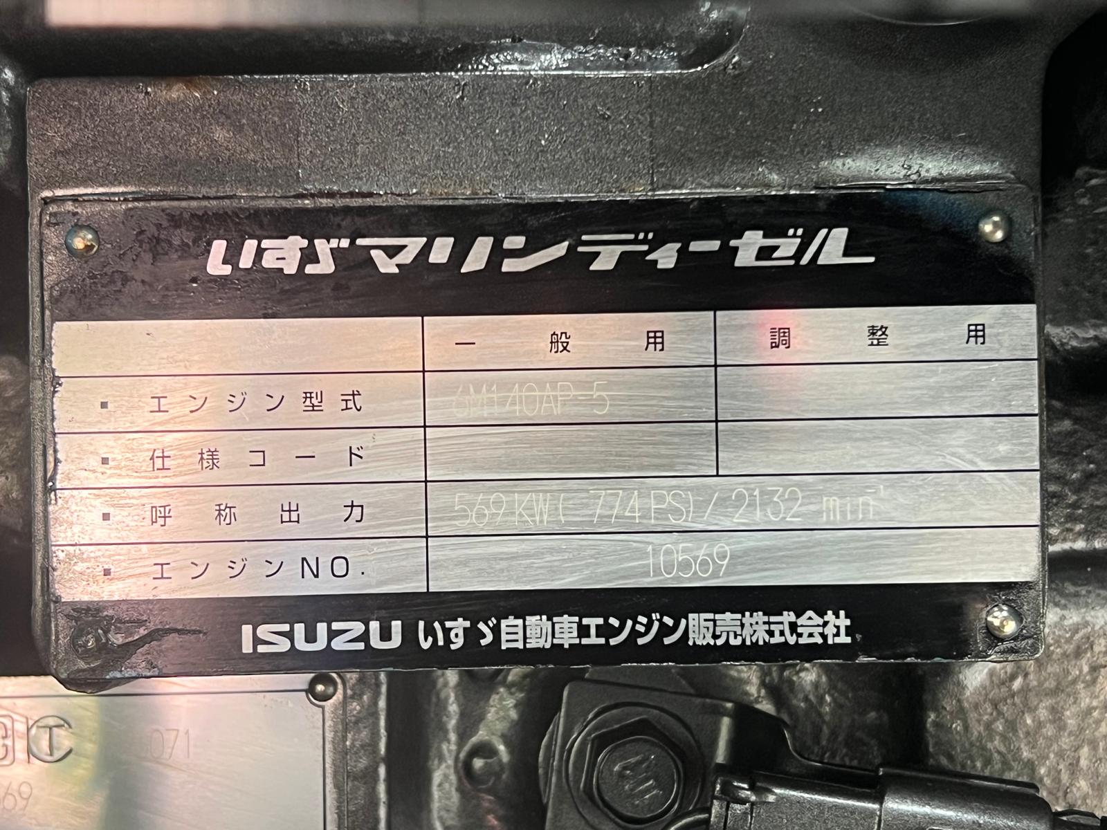 The KOMATSU 6M140AP- 5 10569 is a 6-cylinder marine diesel engine from the GH series, often configured with a 430HP to 440PS output, designed for commercial marine applications.