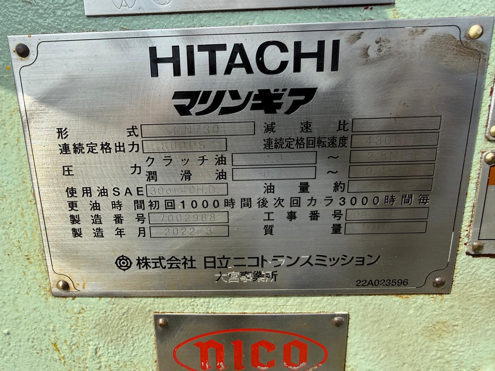 The HITACHI MN730 800PS/430 RPM, Marine gear.