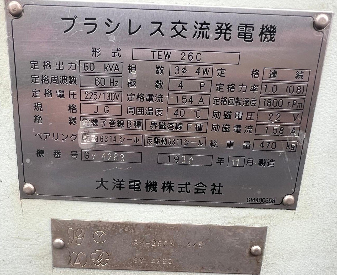 TAIYO Hydrolic TEW 26C 60 KVA GY4283
