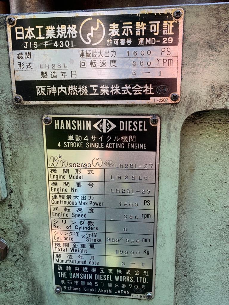 The HANSHIN LH28LG is a 6-cylinder marine diesel engine from the GH series, often configured with a 430HP to 440PS output, designed for commercial marine applications.