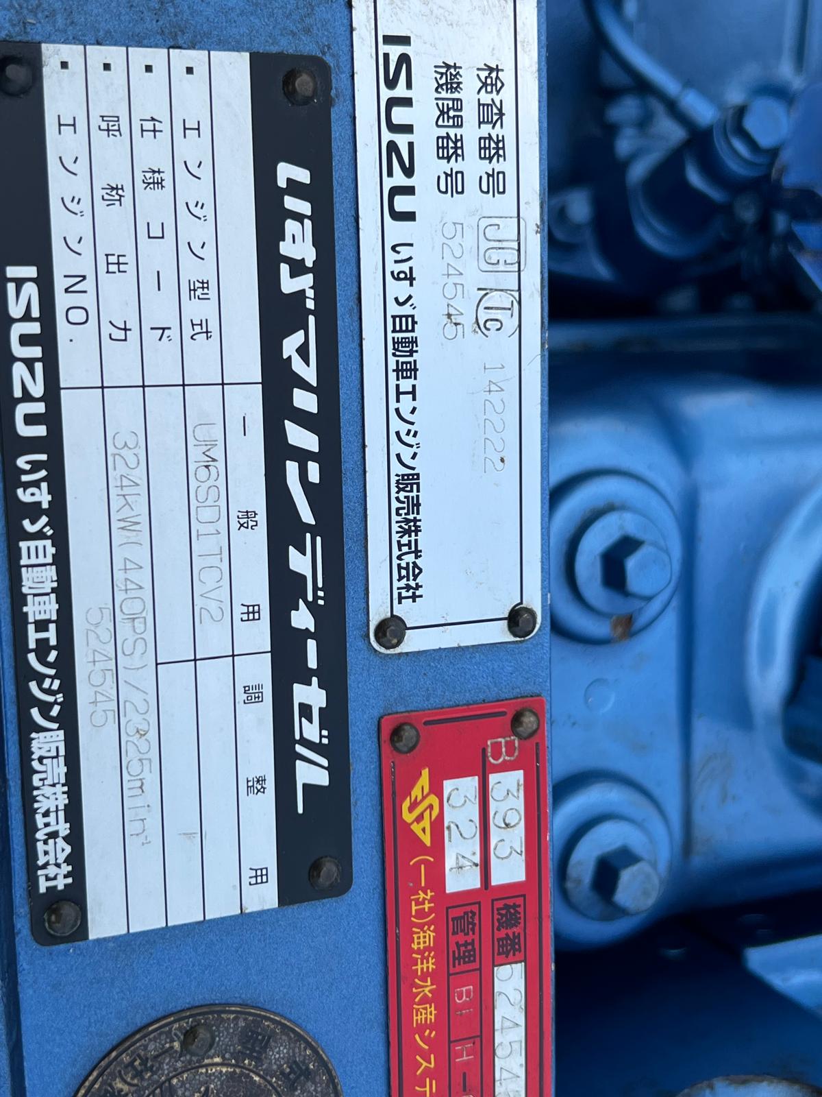 The ISUZU UM6SD1TCV2 524545 is a 6-cylinder marine diesel engine from the GH series, often configured with a 430HP to 440PS output, designed for commercial marine applications.