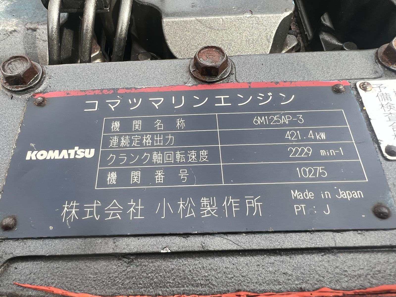 The KOMATSU 6M125AP-3 10275 is a 6-cylinder marine diesel engine from the GH series, often configured with a 430HP to 440PS output, designed for commercial marine applications.