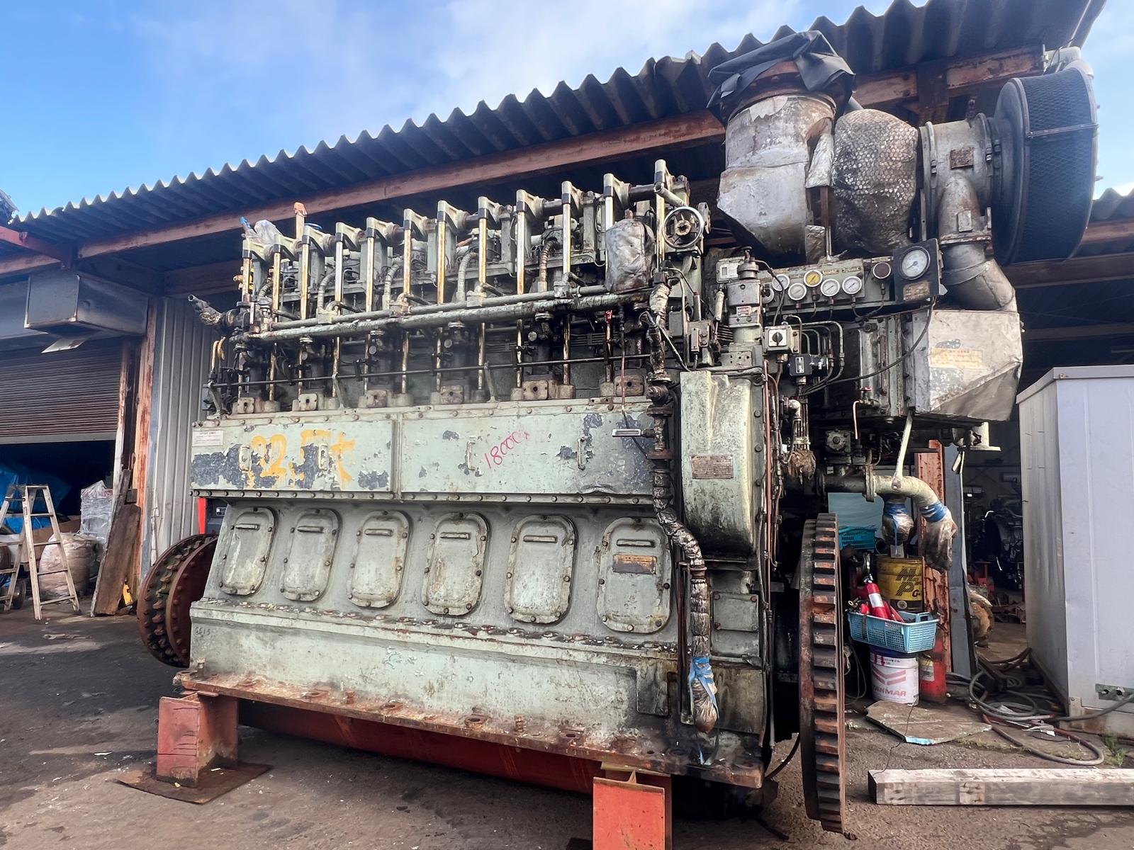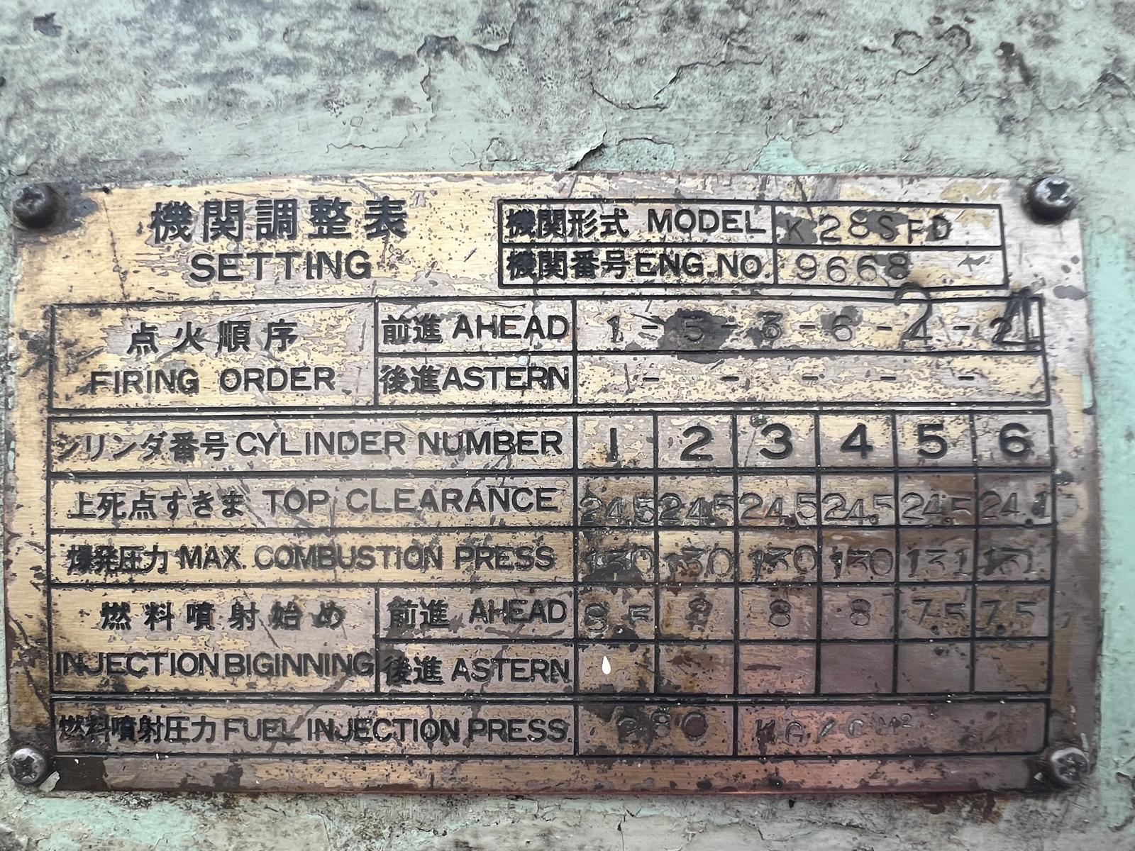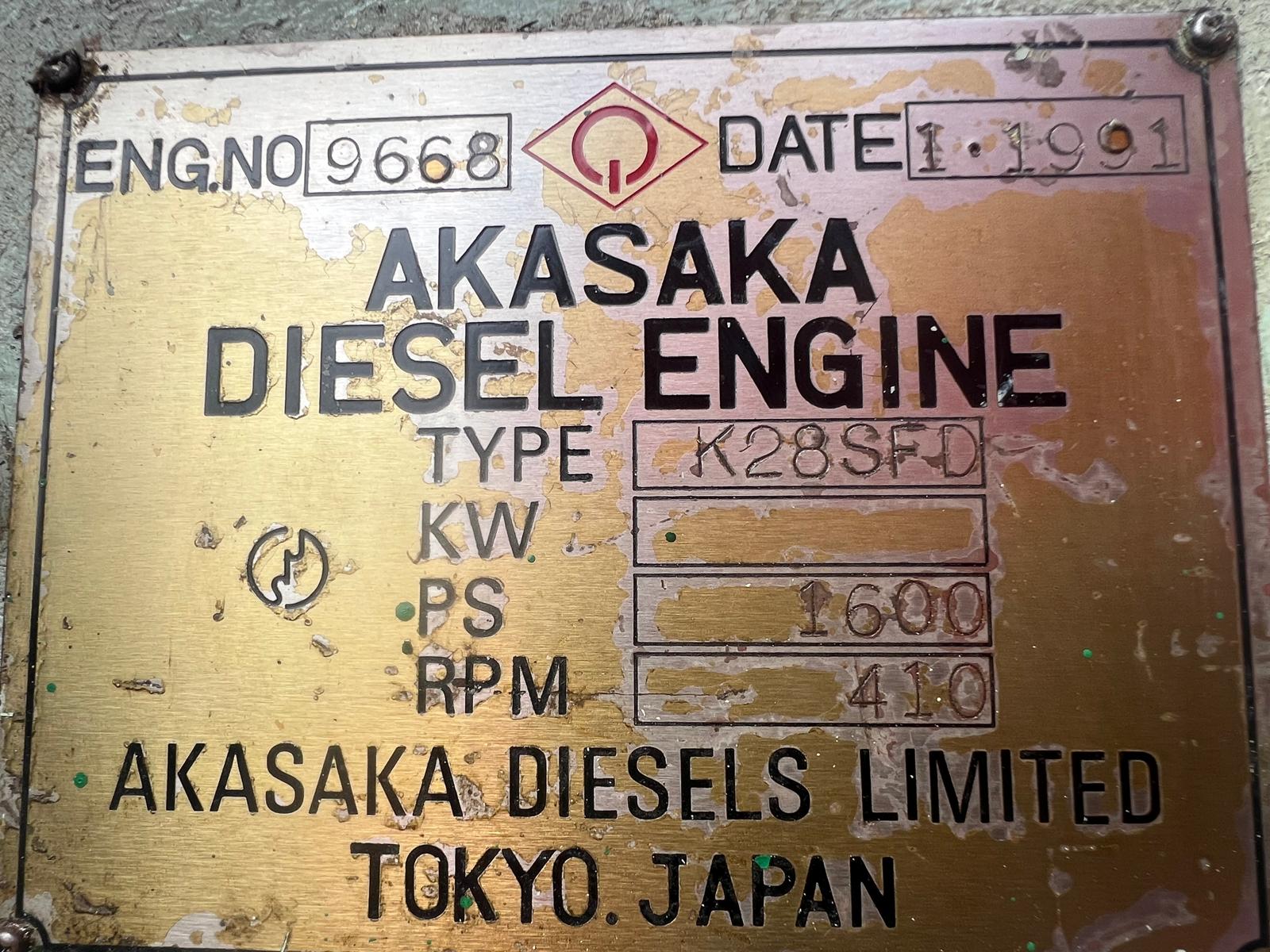 The AKASAKA K28SFD -9668 is a 6-cylinder marine diesel engine from the GH series, often configured with a 430HP to 440PS output, designed for commercial marine applications.