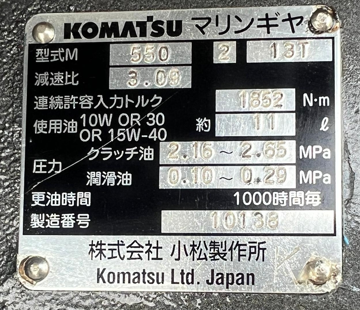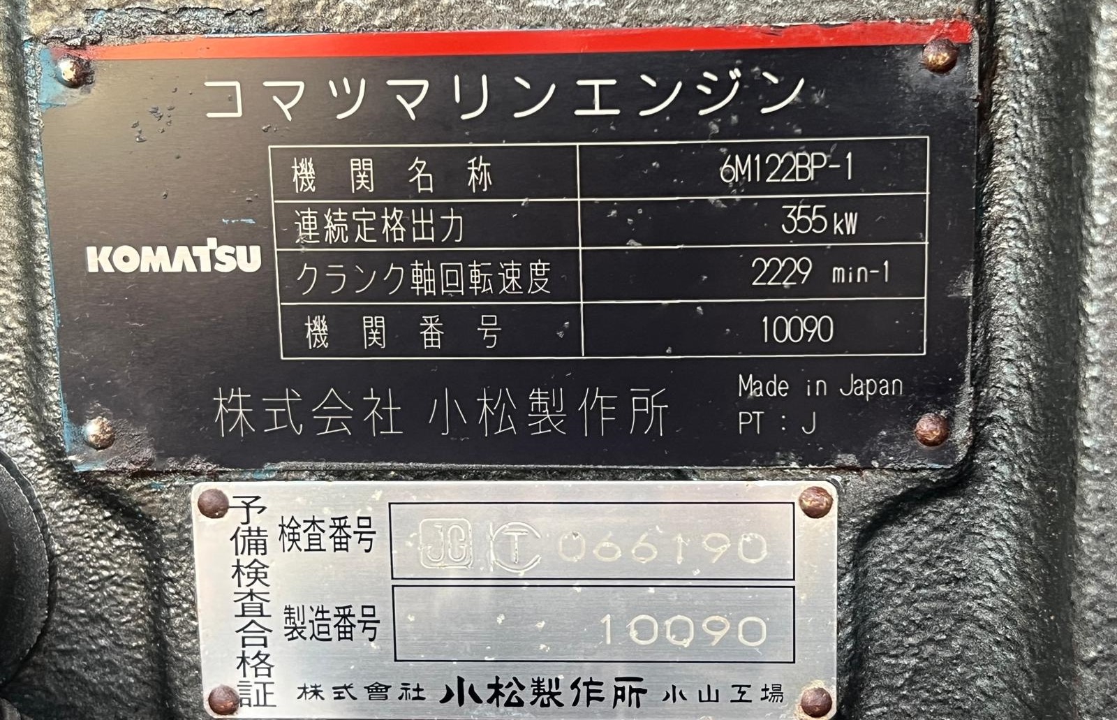 The KOMATSU 6M122BP-1 10090 is a 6-cylinder marine diesel engine from the GH series, often configured with a 430HP to 440PS output, designed for commercial marine applications.